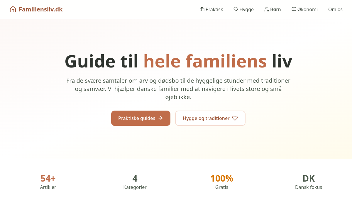 FamiliensLiv.dk er familiens online samlingspunkt. Vi dækker alt fra graviditet og babyer til teenagere og parforhold. Få gode råd, inspiration til aktiviteter og læs om andre familiers erfaringer.