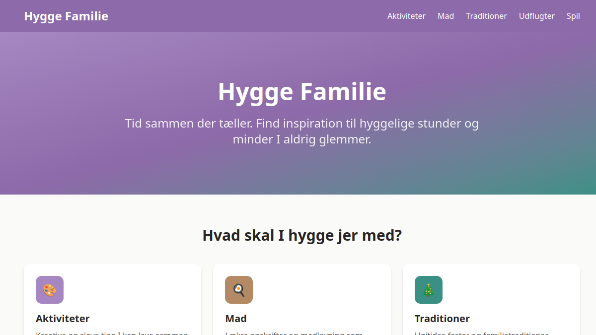 HyggeFamilie.dk handler om at skabe magiske øjeblikke sammen. Vi giver inspiration til familieaktiviteter, højtider, traditioner og alt det der gør familielivet ekstra hyggeligt.