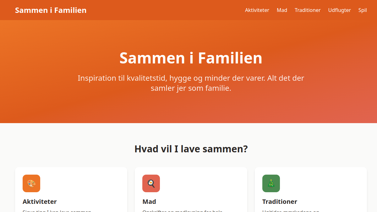 SammenIFamilien.dk fokuserer på det der virkelig betyder noget - at være sammen som familie. Vi giver inspiration til at styrke relationerne, skabe minder og navigere i familielivets udfordringer.
